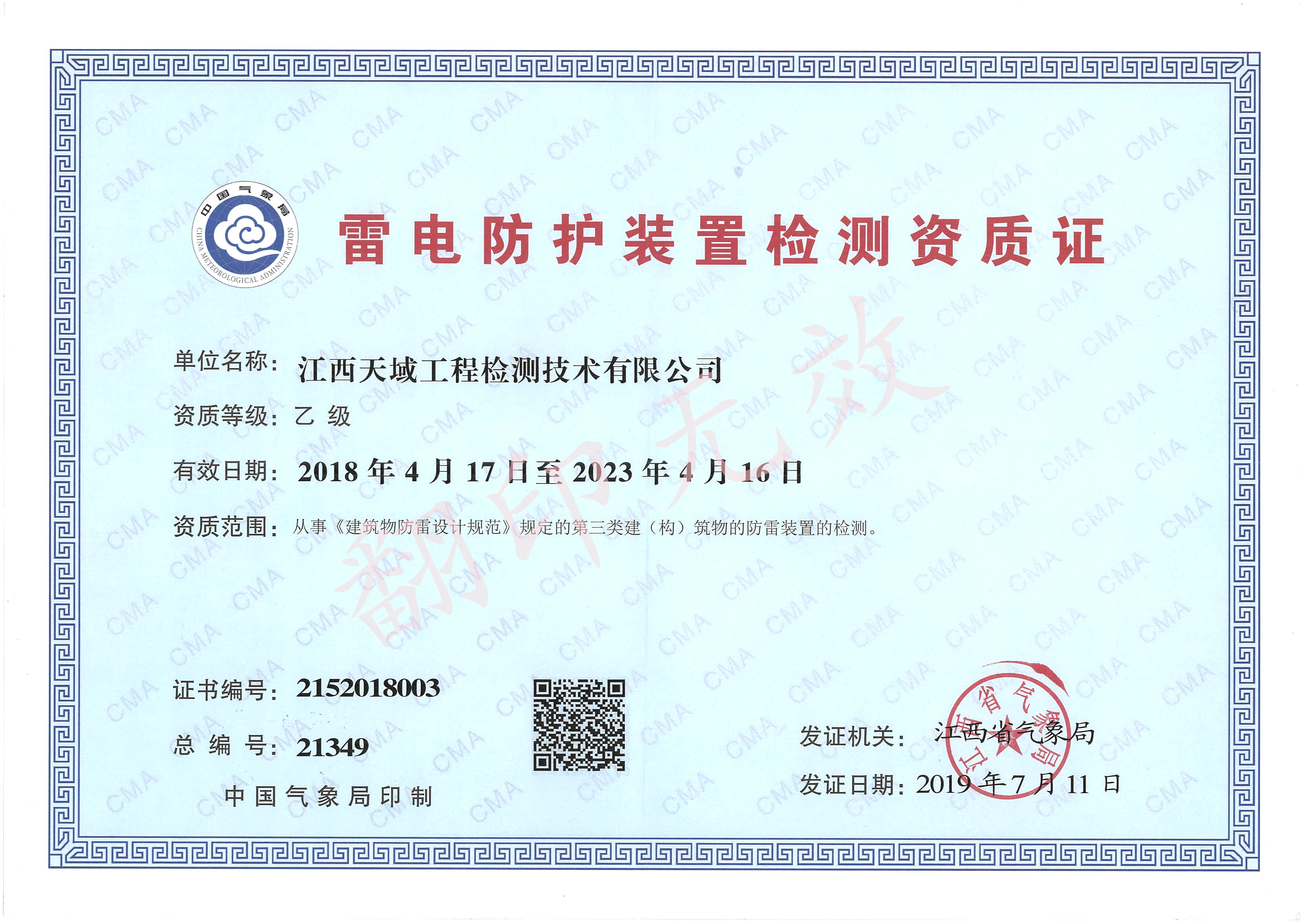 气象防雷资质证书